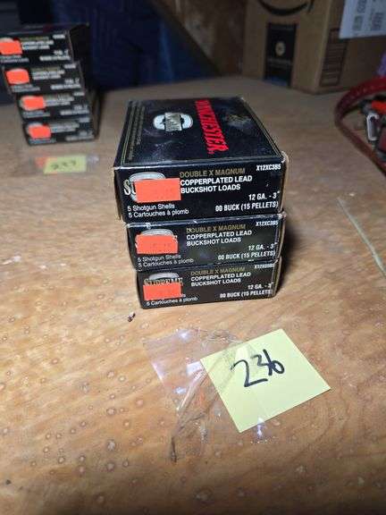 LOT 236 - 3- 5 SHELL BOXES OF WINCHESTER 12GA 00 BUCK 3". SO MUCH PER BOX TIMES 3.