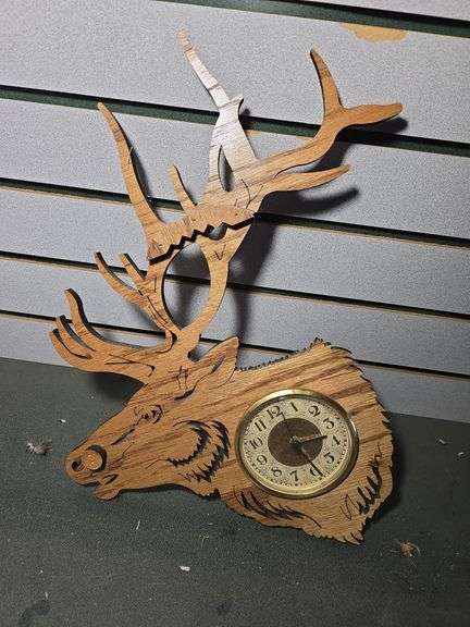 LOT 247 - WOODEN ELK CLOCK, NEEDS BATTERY.