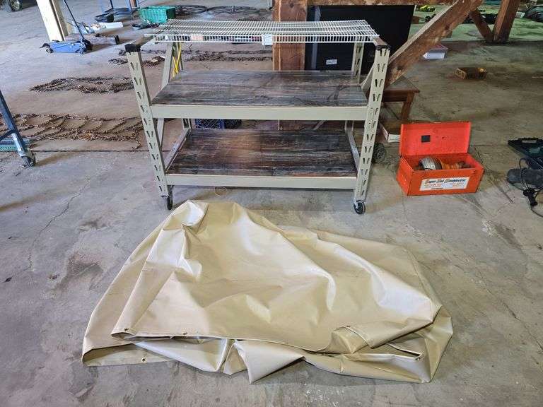 LOT 25 - VERY NICE ROLLING SHELVING RACK WITH POWER STRIP 53IN W, 30IN D, 42IN TALL