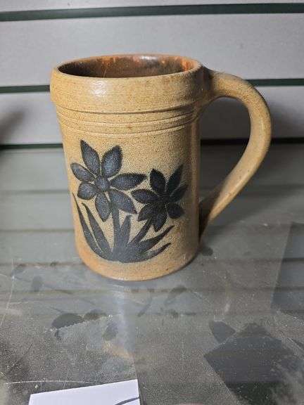 LOT 355 - NEWSON VALLEY STONEWARE MUG. 5.25" TALL